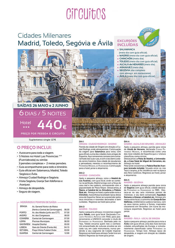 Cidades Milenares - Madrid, Toleno, Segóvia e Àvila