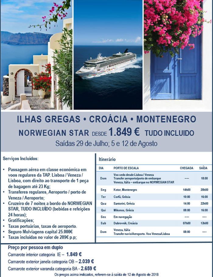 Cruzeiro - Ilhas Gregas, Croácia, Montenegro