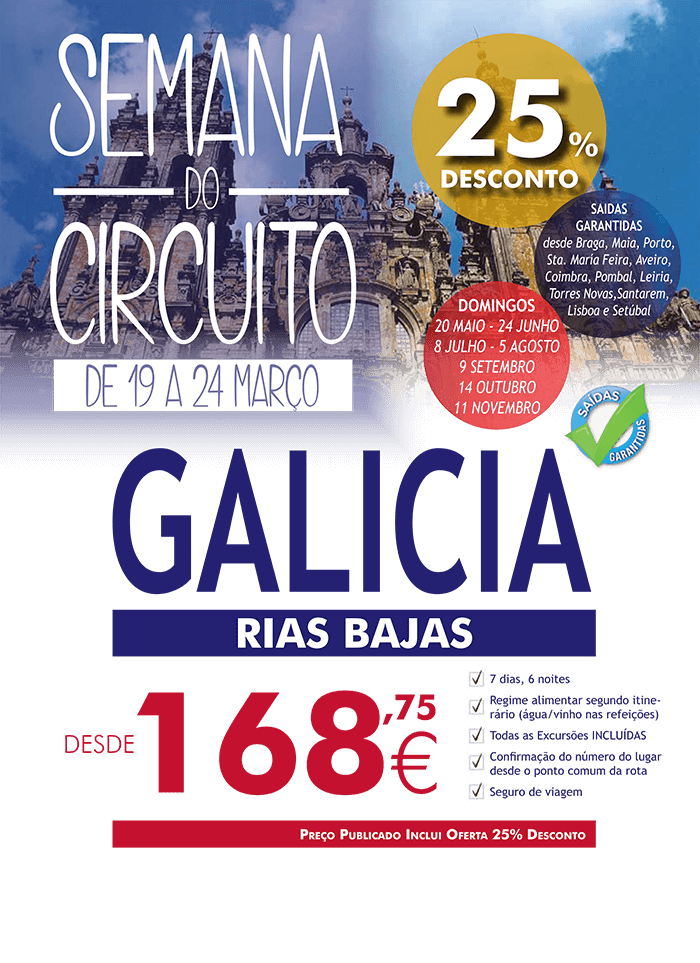 Galícia - Rias Bajas - 7 Dias / 6 Noites