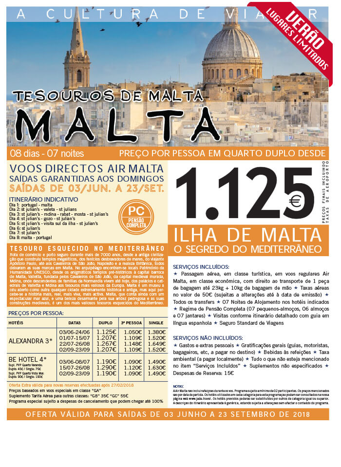 Malta - Verão 2018 - 08 dias / 7 Noites