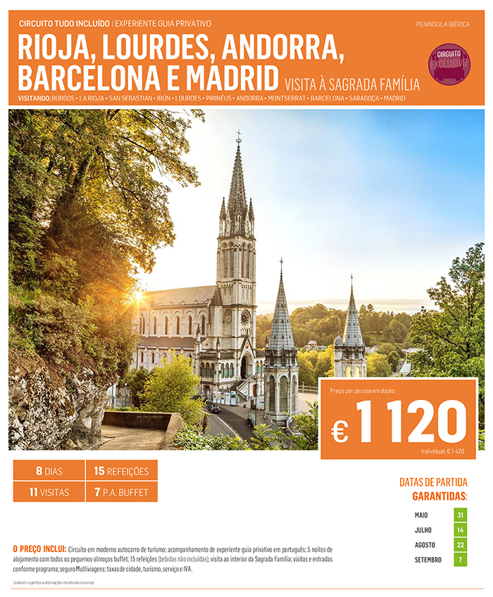 Rioja, Lourdes, Andorra, Barcelona e Madrid - Visita à Sagrada Família